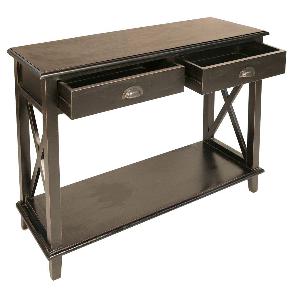 This Old World Style Console Table is made from solid hardwood and finished here at Sigla Furniture Factory and can be custom-made in different finishes in our Los Angeles Factory, California. As shown, this beautiful console table will add beauty and comfort to your home.