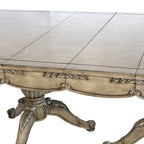 Extendable Functionality: One of the standout features of the French Louis Pedestal Dining Table is its extendable design. The table has extensions that allow you to expand the dining surface, providing flexibility to accommodate more guests for larger gatherings. This functionality makes the table a beautiful centerpiece and a practical solution for hosting family and friends.