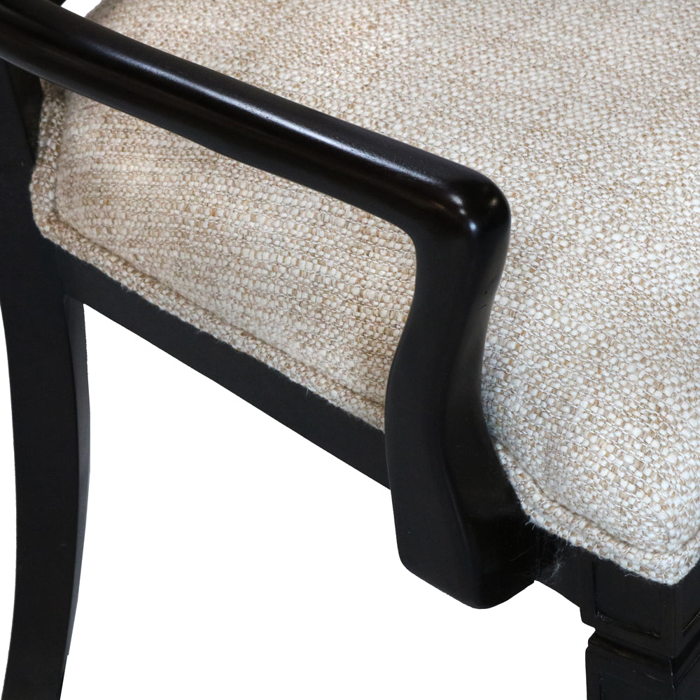The Lancaster X-Back Transitional Arm Dining Chair perfectly fuses classic charm and modern sophistication. Designed to complement a variety of dining spaces, this armchair boasts a sleek black frame with a signature "X" back design that offers both aesthetic appeal and sturdy support. Its transitional style seamlessly bridges traditional elegance with contemporary simplicity, making it a versatile choice for any décor.