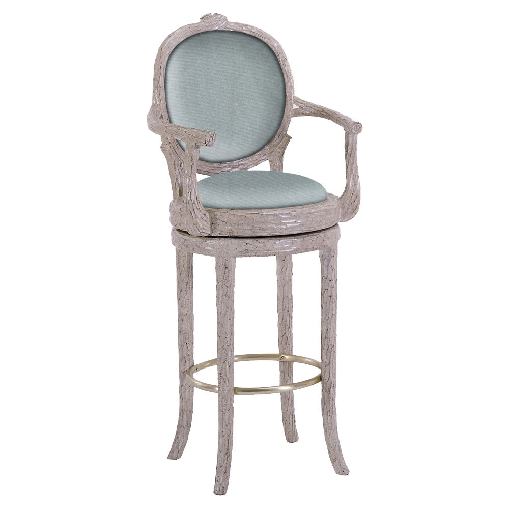 This Chiseled Louis XII Swivel Barstool Furniture is Finished in Light Finish and Upholstered in Light Fabric. This Barstool can be custom-made in different finishes and fabrics in our Los Angeles Factory, California. Call us for pricing.