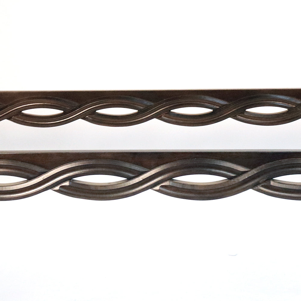 Elegant Design and Finish: The Madrid Loop Dining Table S843T-1 boasts a refined, contemporary design that enhances the beauty of any room. The glass tabletop provides a clear, unobstructed view of the intricately designed metal frame below, which features a unique loop pattern. The metal frame is finished in a rich walnut hue, adding a touch of warmth and sophistication to the table's overall aesthetic.