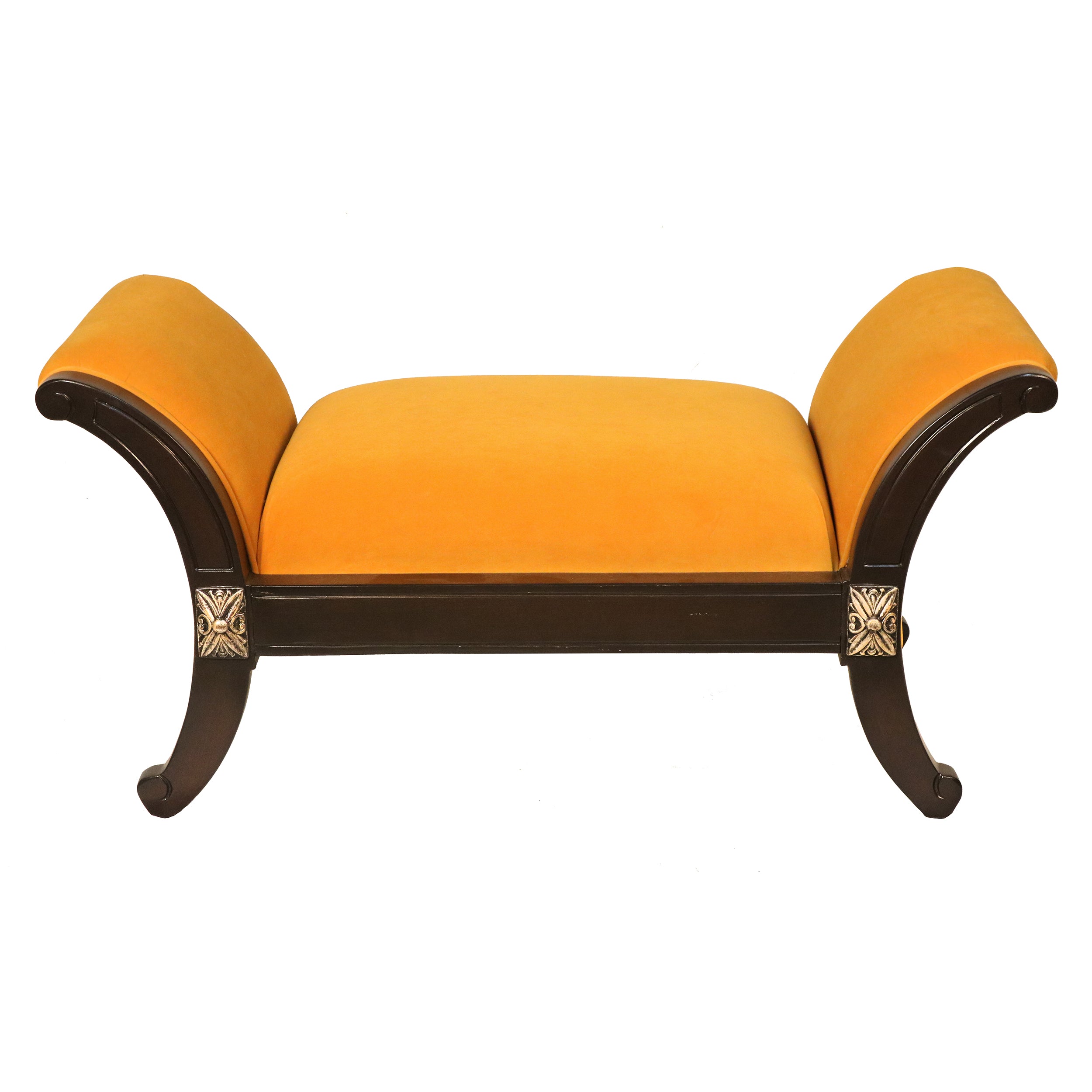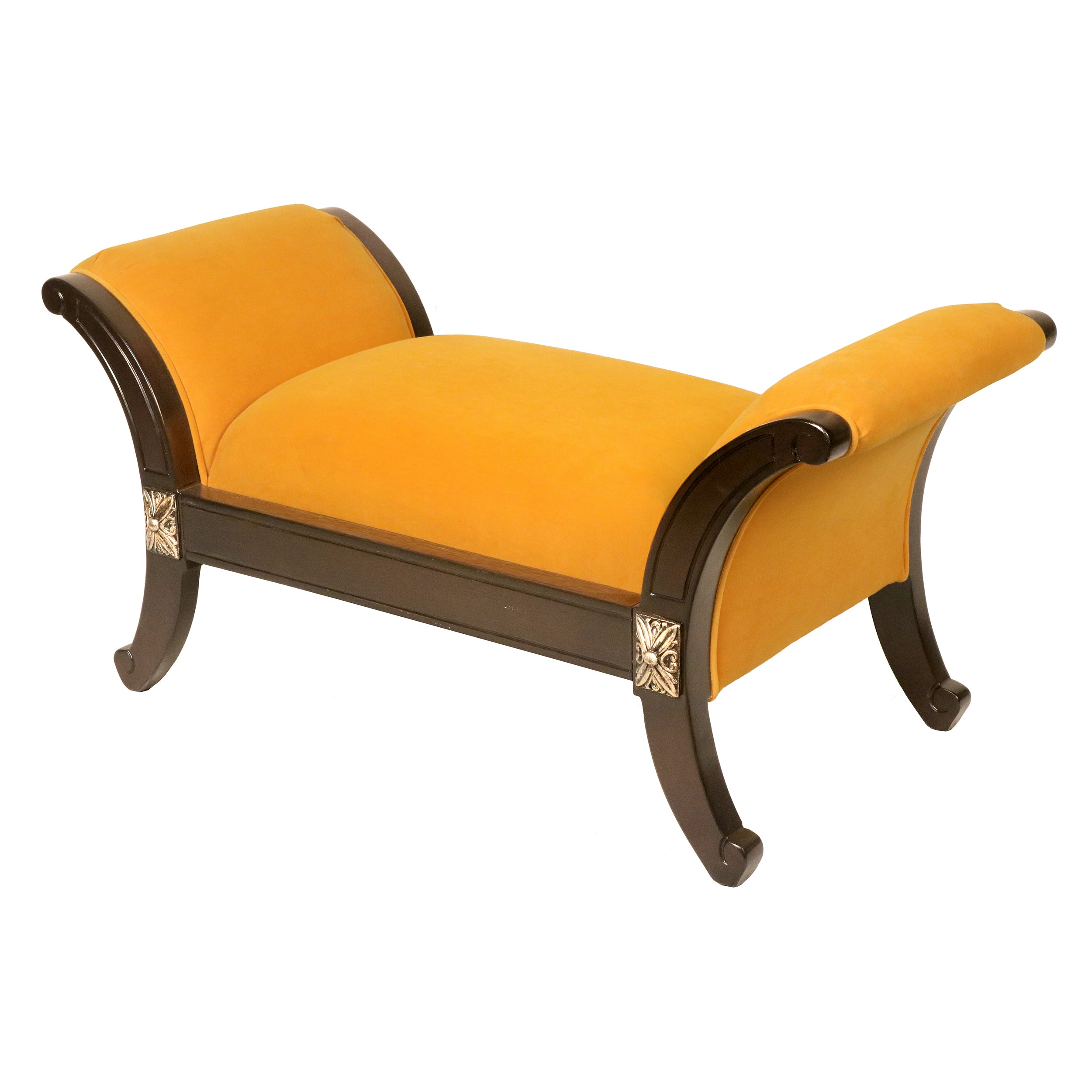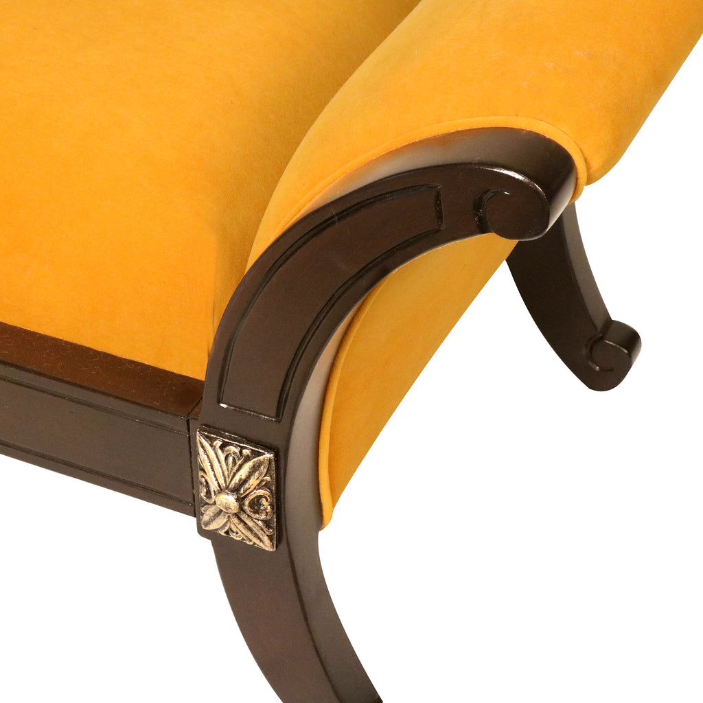 Upholstered in plush, golden ochre velvet, the Celeste Bench radiates warmth and opulence. The sumptuously cushioned seat offers unparalleled comfort, making it perfect for a bedroom, entryway, or at the foot of a grand dining table. The high-quality crushed velvet not only enhances the aesthetic appeal but also provides a soft, inviting texture that is both luxurious and durable.